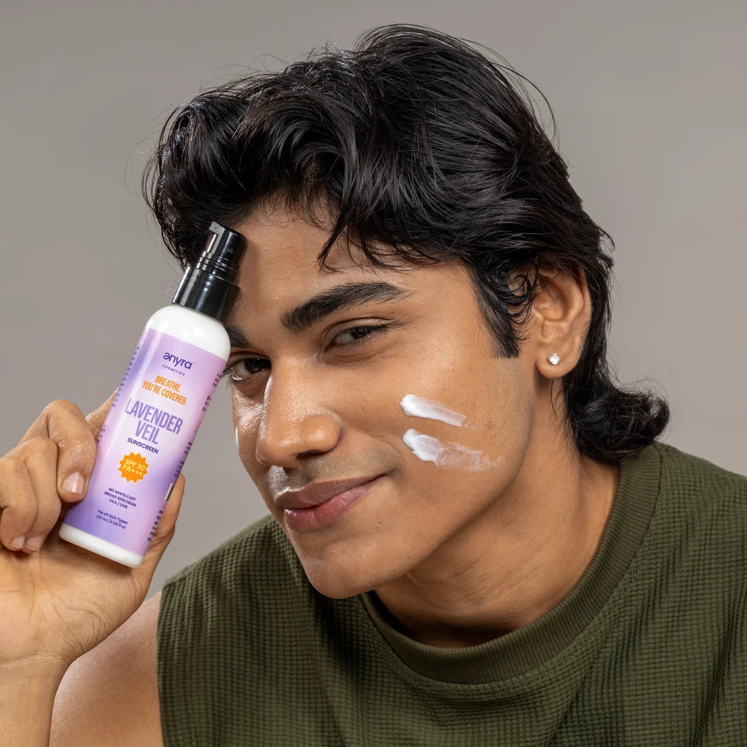 Protect and soothe your skin with Lavender Veil Sunscreen, a lightweight, hydrating formula with SPF 30 that shields against harmful UVA and UVB rays while nourishing your complexion. Vitamin E provides antioxidant defence, Lavender Oil calms and soothes, and Squalane delivers deep, lasting hydration. Its non-greasy texture absorbs quickly, leaving skin soft, smooth, and radiant. Perfect for daily use, this sunscreen combines effective sun protection with luxurious skincare benefits.